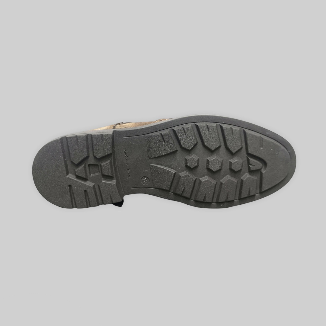 Tutti i nostri materiali sono di origine italiana e gli elementi accessori della calzature (suole ecc…) sono prodotti in Italia. Ogni nostro prodotto è realizzato a mano, quindi tieni presente che essendo un prodotto artigianale, possono verificarsi irregolarità nella pelle o nelle finiture, queste ultime non sono da definire come un difetto ma anzi conferiscono alla calzatura un carattere unico e originale.
