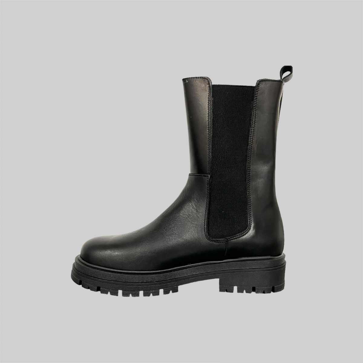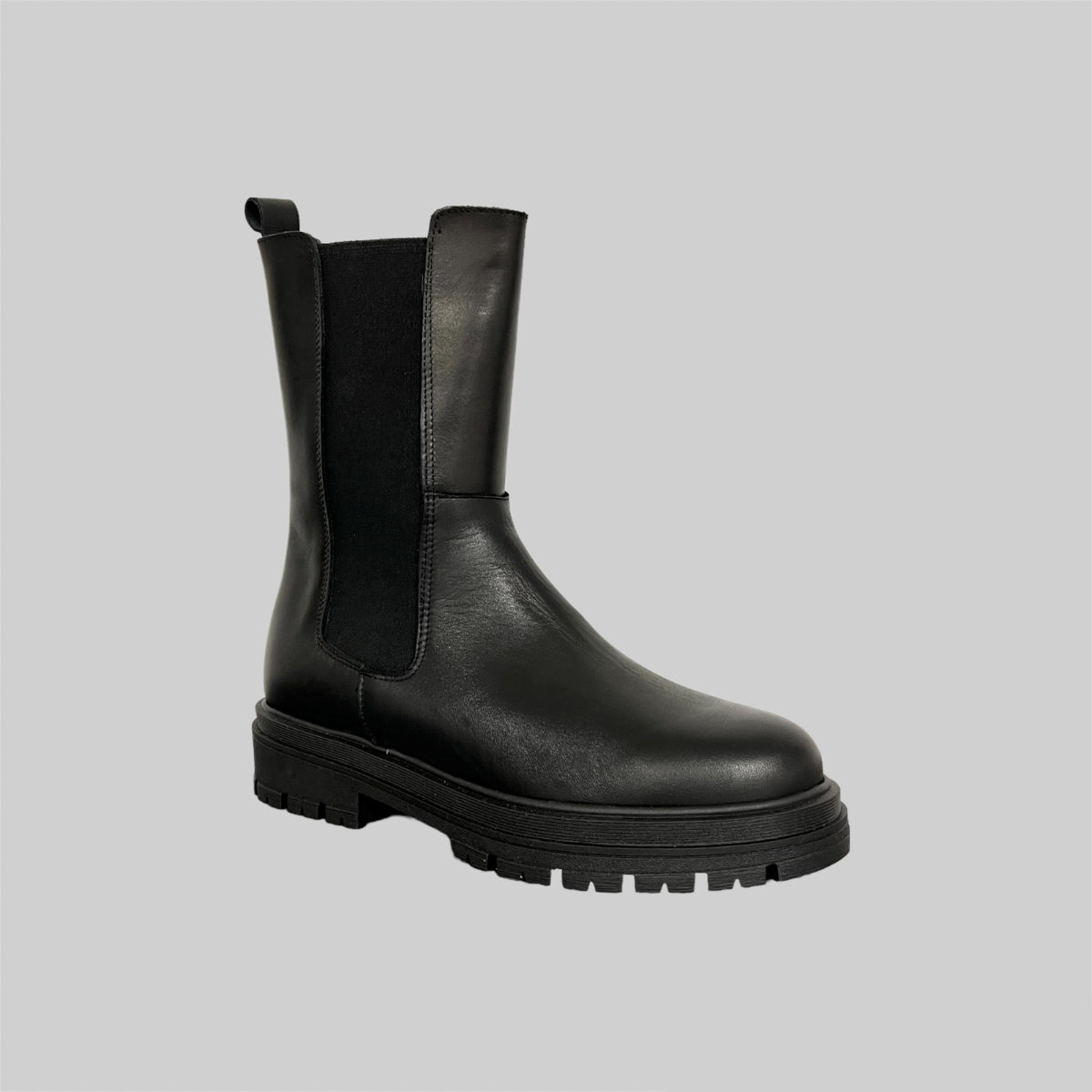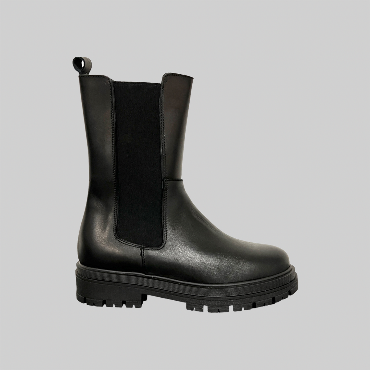 Stivaletto Beatles in pelle con molla laterale e suola in gomma.