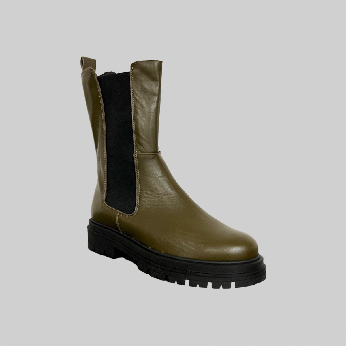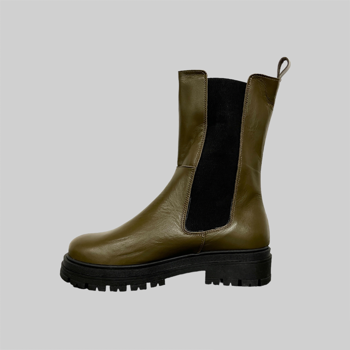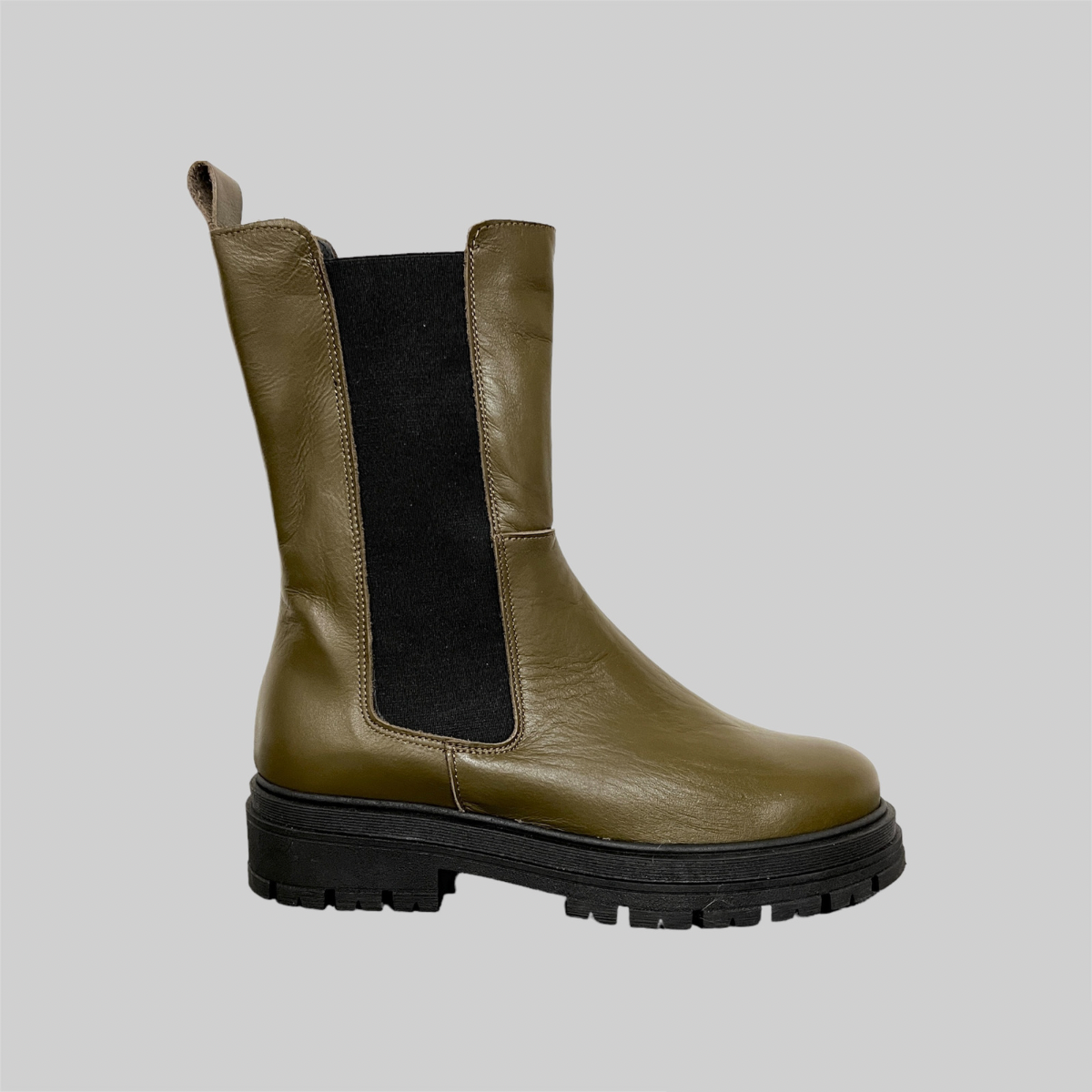 Stivaletto Beatles in pelle con molla laterale e suola in gomma.