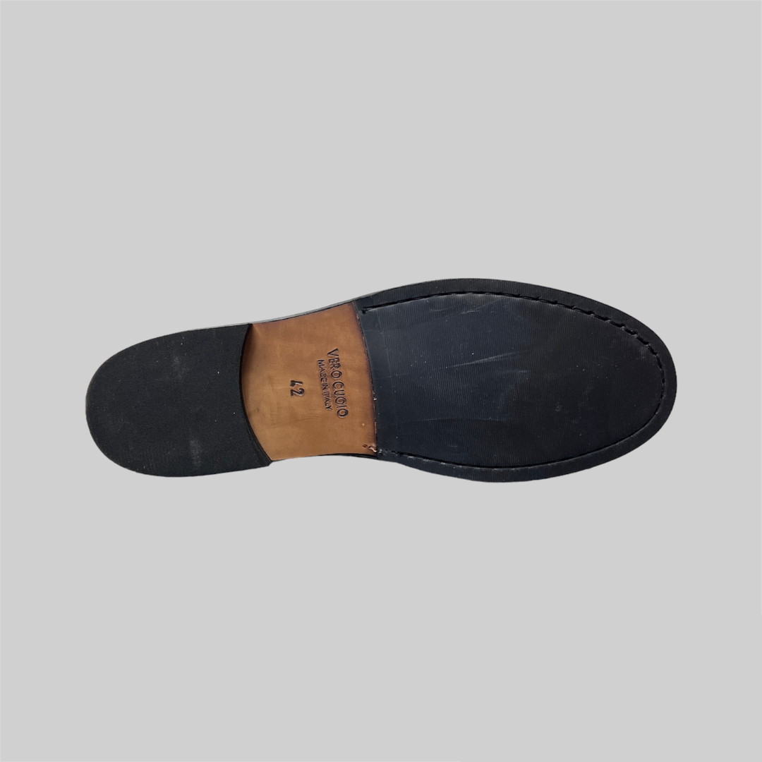 Tutti i nostri materiali sono di origine italiana e gli elementi accessori della calzature (suole ecc…) sono prodotti in Italia. Ogni nostro prodotto è realizzato a mano, quindi tieni presente che essendo un prodotto artigianale, possono verificarsi irregolarità nella pelle o nelle finiture, queste ultime non sono da definire come un difetto ma anzi conferiscono alla calzatura un carattere unico e originale.